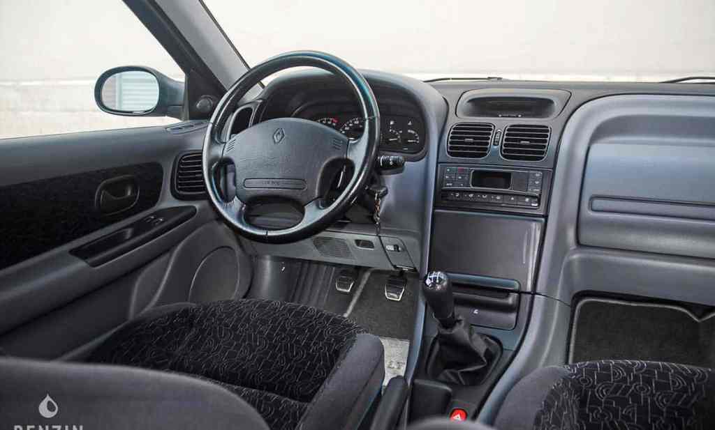 Ce bel exemplaire s’apprécie pour sa configuration mais aussi par sa motorisation. Sur les baguettes, on trouve le logo « V6 » qui ne laisse planer aucun doute : c’est bien un moteur 6-cylindres essence que l’on trouve sous le capot. Un moteur en superbe état et entretenu rigoureusement, avec une baie moteur bien remplie ! C’est un V6 de 3.0 litres de cylindrée délivrant pas moins de 170 chevaux à 5 500 tr/m et 235 Nm de couple à 4 500 tr/m. Ici, c’est une Laguna 1 phase 1, elle ne profite donc pas de l’évolution à 190 chevaux opérée à partir de 1997. Un bloc qui favorise l’onctuosité à la performance pure, en apportant une jolie sonorité. Derrière ce style assez sage, la Laguna V6 était donc capable de tenir à plusieurs concurrentes allemandes…