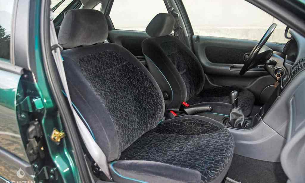 La sellerie en tissu gris ne présente pas de trou ni de déchirure mais elle présente tout de même quelques légères traces d’usure. La partie électronique est également fonctionnelle. Un voyage dans le temps donc qui s’apprécie aussi bien aux sièges avant qu’à l’arrière. Une assise moelleuse qui donne envie de prendre la route… Et vous pourrez avoir l’esprit tranquille puisque l’entretien a été régulier. Dernièrement, le catalyseur a été remplacé, tout comme les bougies et le frein à main a été réglé. En revanche, les pneus sont anciens, ce qui nécessitera un remplacement sous peu.