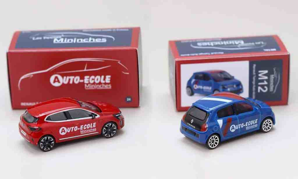 Cela faisait quelques temps déjà que la gamme des Petites Mininches n’avait pas été étendue ! Voici donc deux sympathiques nouveautés que l’on peut réserver depuis quelques jours déjà. Toujours à l’échelle 1/64, nous retrouvons deux modèles Renault avec une décoration d’auto-école. D’un côté, nous avons la Renault Clio 5 phase 2 (restylée) de couleur rouge. De l’autre, c’est la Twingo 3 qui se pare d’une décoration originale, depuis une base Majorette. Ces deux modèles sont en tirage limité et numéroté, avec un prix de vente fixé respectivement à 12 et 15 €. Si vous souhaitez passer commande ne tardez pas trop car les stocks se sont déjà bien vidés…