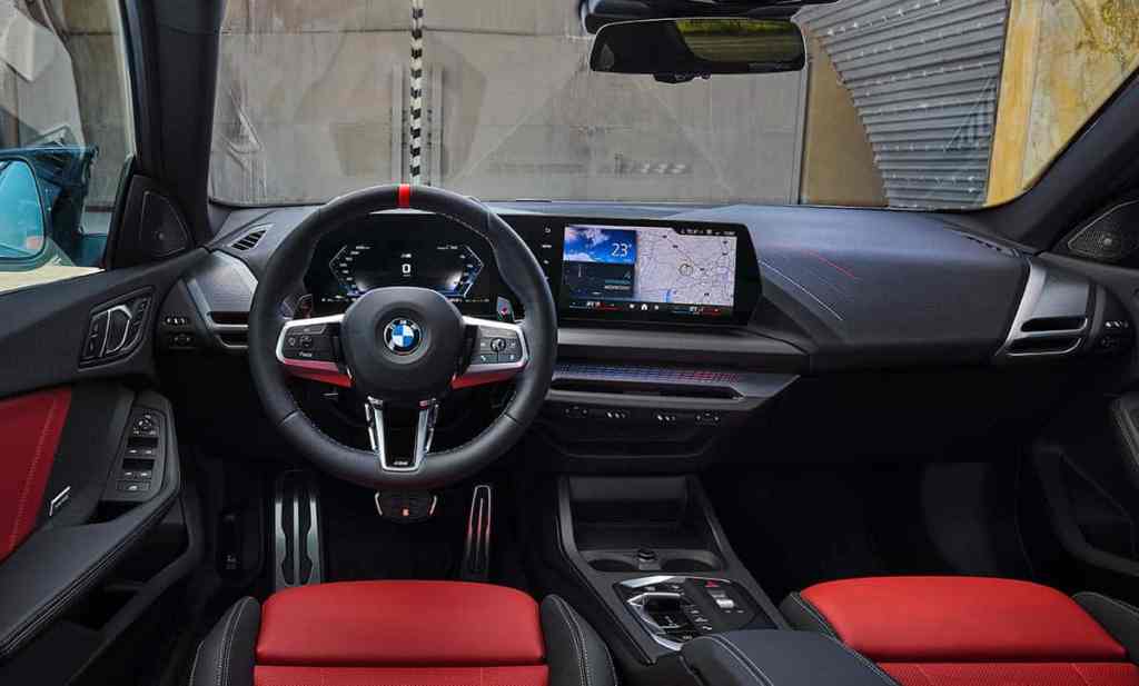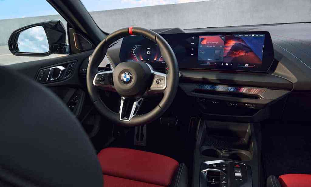 C’est sans doute à bord que l’on appréciera le plus les efforts accomplis par la marque. Naturellement, les BMW Série 1 et Série 2 Gran Coupé reposant sur la même plateforme, nous n’avons donc pas de réelle surprise. Toutefois, le plus grand changement réside dans l’intégration d’un double-écran. On découvre alors une grande dalle incurvée qui centralise toute l’instrumentation. L’écran de droite permet d’accéder à toute la partie multimédia… Ainsi que diverses commandes, dont celles de la ventilation puisque la marque allemande a fait le choix de supprimer un maximum de commandes physiques. Cela ne fera pas que des heureux. On notera aussi que l’écran central de 10,7 pouces donne accès au dernier système d’exploitation de la marque, accompagné par l’assistant vocal Alexa, d’Amazon.