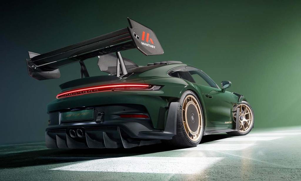 Manthey Racing, c’est une célèbre écurie allemande, créée il y a près de 30 ans et qui a multiplié les succès, en endurance principalement. Au fil des années, l’équipe a réussi à faire ses preuves à tel point qu’en 2013, Manthey Racing (MR pour les intimes) était détenue pour moitié par Porsche. En parallèle, Manthey Motors a vu le jour, prenant la forme d’un préparateur reconnu par Porsche, pour l’aboutissement de ses préparations. Justement, Manthey vient de dévoiler un nouveau kit, vendu à plus de 92 000 €. Il permet d’améliorer encore l’aérodynamique de la dernière Porsche 911 (992) GT3 RS de 525 chevaux. Une préparation savoureuse qui mise beaucoup sur la gestion des flux d’air en générant jusqu’à une tonne d’appui à 285 km/h. Qui dit mieux ?