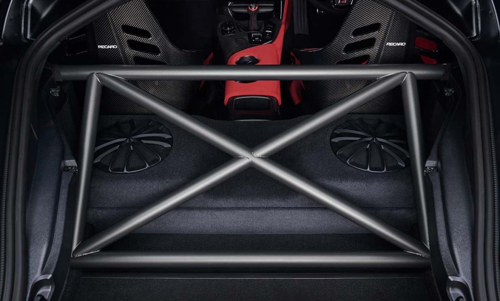 À bord, les améliorations sont aussi nombreuses. Les touches de carbone sont bien présentes, tout comme des sièges baquets en carbone Recaro Podium CG, recouvert de rouge pour le siège conducteur et de noir pour celui du passager, avec un revêtement en Alcantara. Les ceintures sont aussi en rouge. Une très belle présentation qui permet de conserver tous les équipements de confort et notamment la partie multimédia.