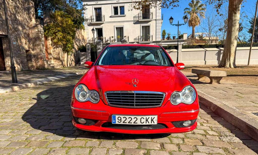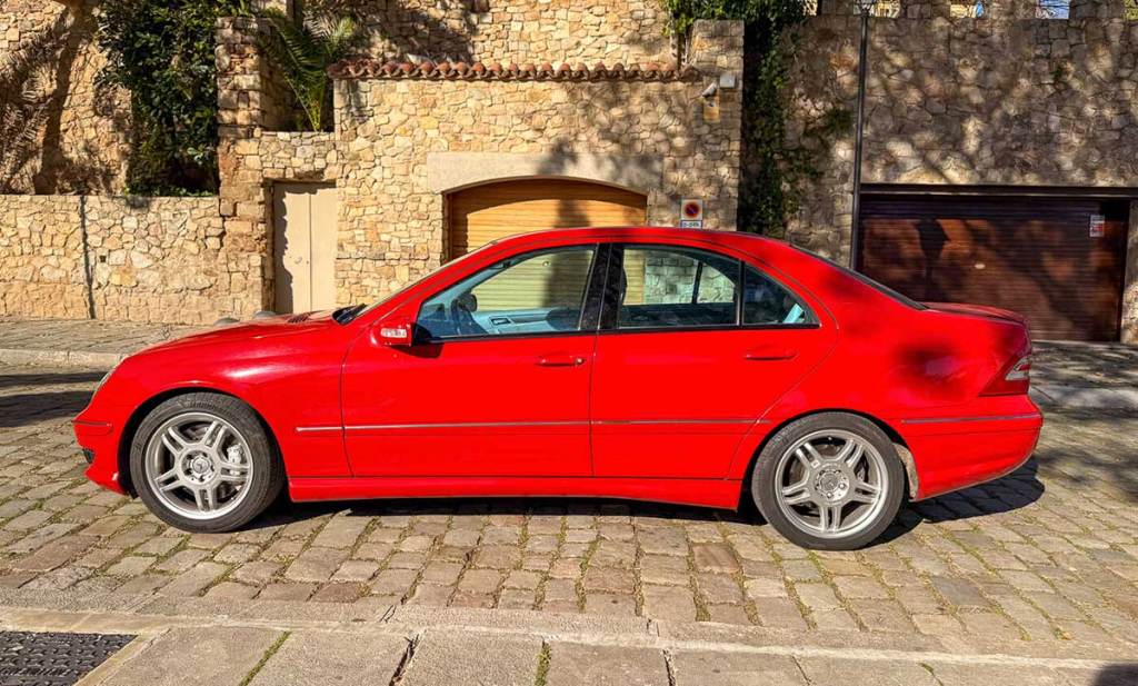 Côté dotation, c’est plutôt riche puisque la berline allemande s’offre la navigation, la climatisation automatique, le volant multifonction, le régulateur de vitesse, les sièges en cuir, les rétroviseurs électriques et même les feux Xénon avec lave-phares intégrés. Pas mal pour un modèle dont la commercialisation a été initiée il y a plus de 20 ans. L’exemplaire dont je vous parle ici dispose d’une configuration savoureuse et très originale. Outre la carrosserie rouge, on découvre un très bel intérieur clair. Ce modèle d’origine espagnole dispose encore de tous ses documents d’origine et notamment de son certificat de conformité et de son carnet d’entretien. Le kilométrage de 174 600 kilomètres peut sembler élevé mais cette Mercedes C 30 CDI AMG a été mise en circulation en 2003.
