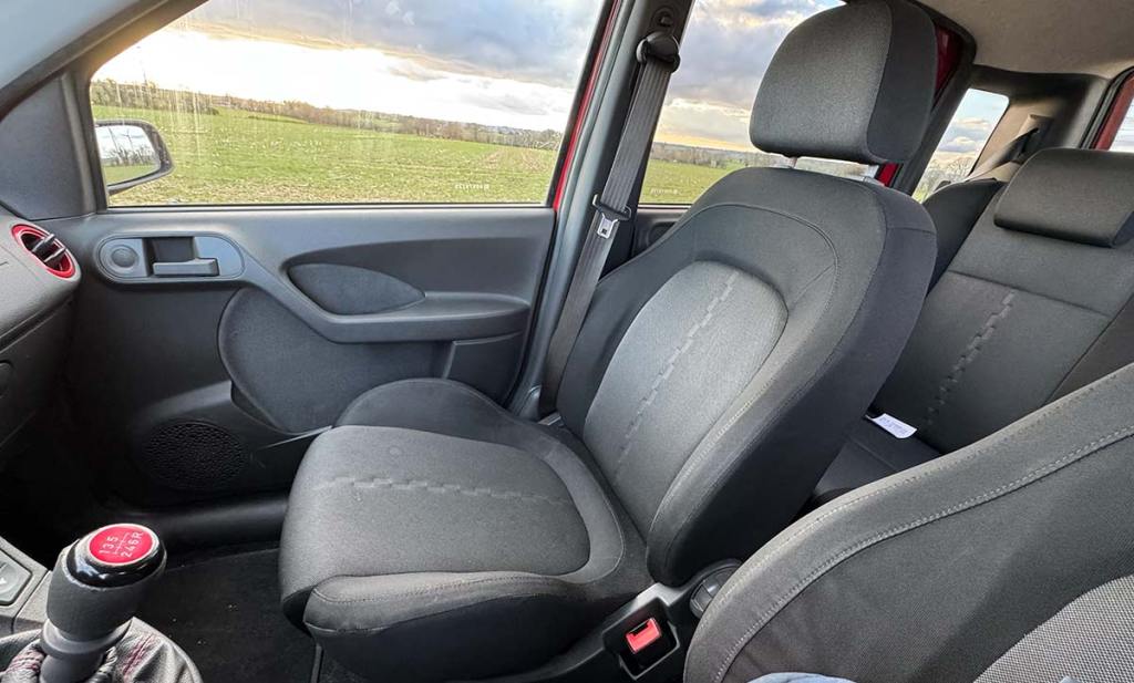 À titre d’information, mon exemplaire d’octobre 2007 est très basique. Elle est d’origine italienne et ne dispose donc pas des commandes au volant (qui sont de série sur les Panda 100HP d’origine française). Mon unique option est la peinture rouge métallisée, qui était facturée 200 € en option à l’époque.