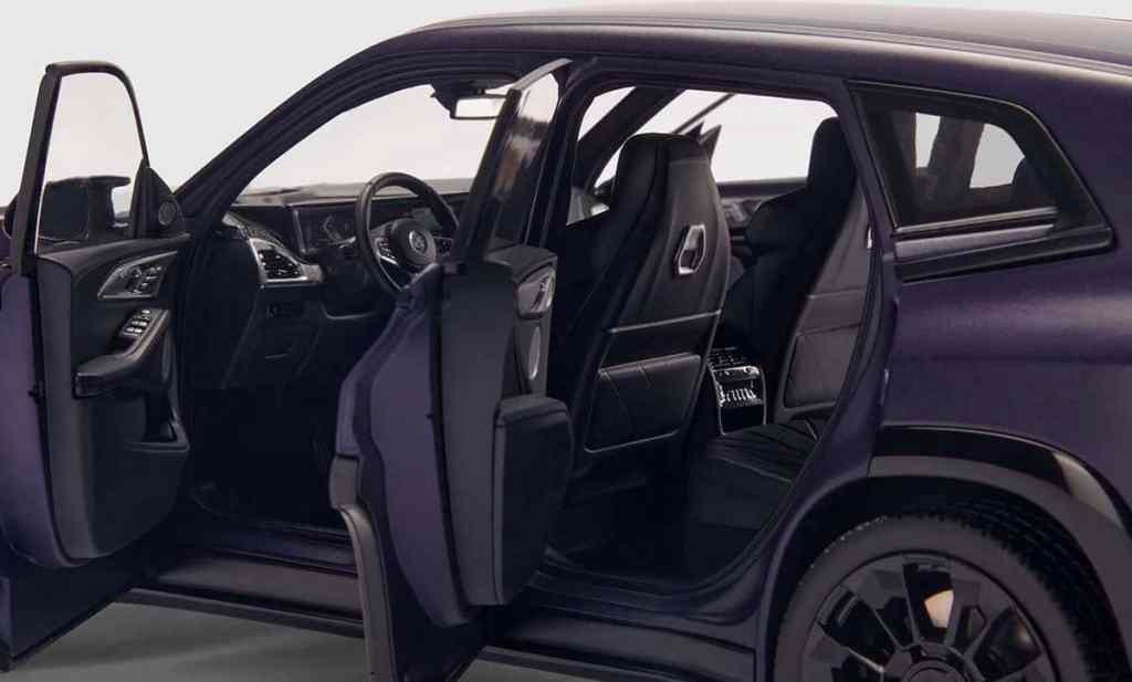 Minichamps a modélisé une grande partie de la gamme actuelle BMW. Cela comprend notamment le XM, ce grand SUV hybride-rechargeable. À l’échelle 1/18, il s’agit d’une superbe pièce qui dispose de toutes les parties ouvrantes, que ce soit le capot, les quatre portes ou encore le coffre. L’originalité de cette version vendue au sein du réseau BMW vient de la configuration colorée. Il s’agit d’un violet mat très original (Frozen Techno Violet). Cette miniature 1/18 en métal reprend parfaitement les attributs du modèle réel, tiré à 47 exemplaires seulement. À bord, on retrouve une sellerie en cuir noir assez classique. Quelques détails ont été ajoutés, comme un éclairage d’ambiance violet, des bandes aux couleurs de Motorsport ainsi qu’une plaque numérotée. La miniature en elle-même est de grande qualité.