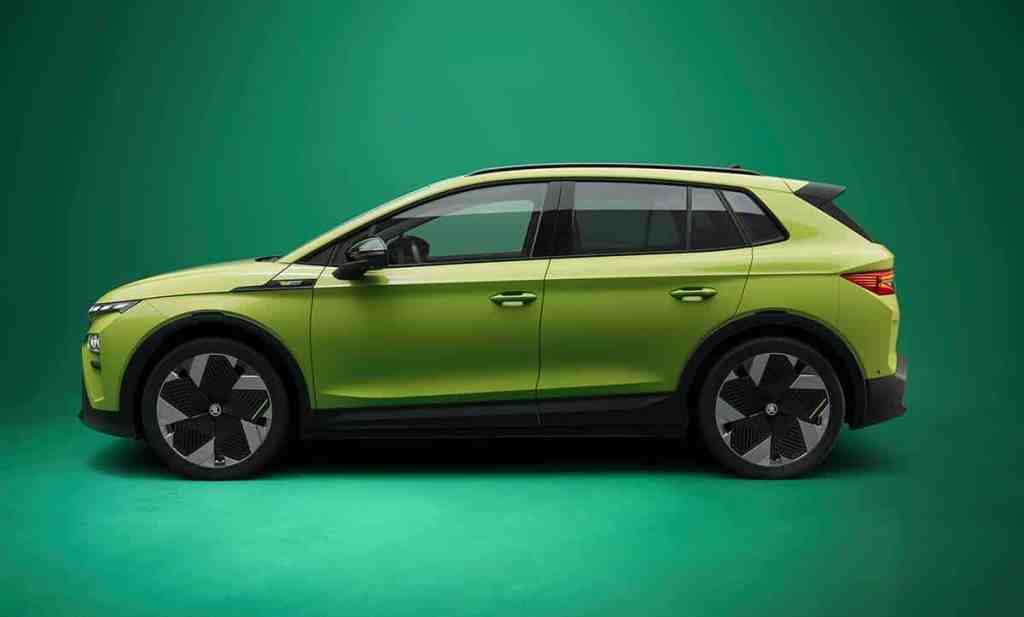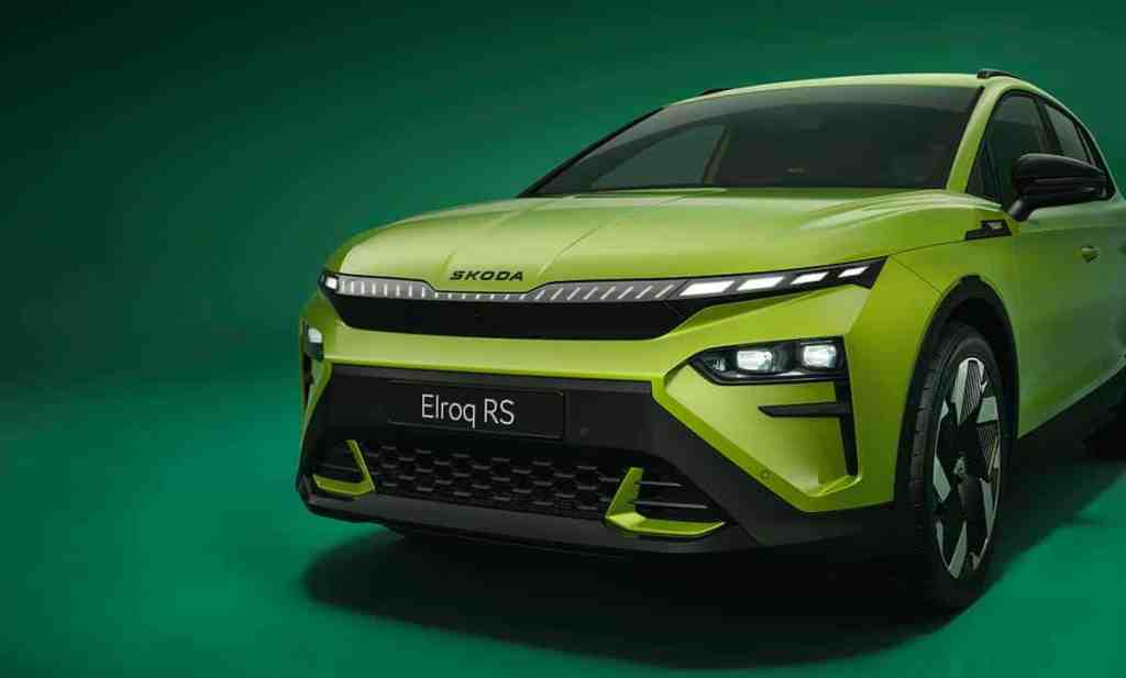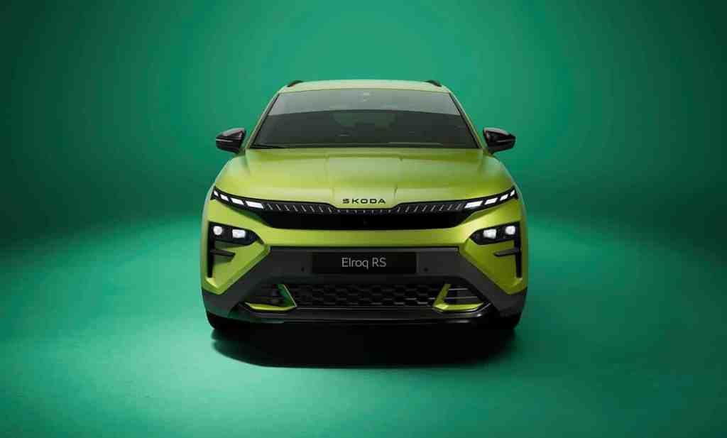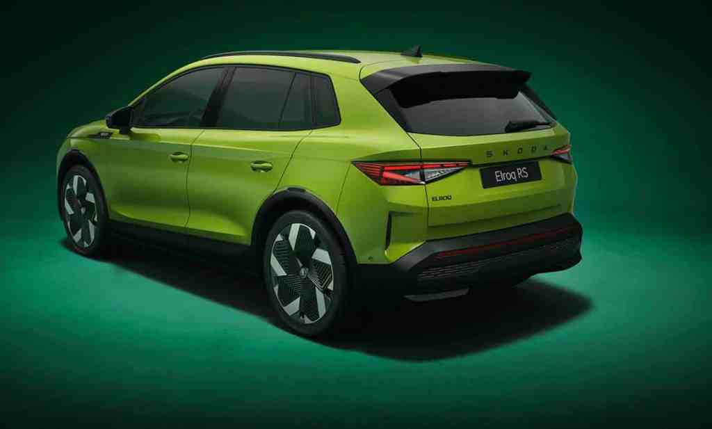 Les phares avant disposent d’office de la technologique Full Matrix LED tandis qu’à l’arrière, les clignotants sont à défilement. Quelques détails ont été retravaillés, comme le passage en noir brillant de différents éléments, des badges spécifiques ou encore cette peinture de carrosserie réservée à la version RS : le vert Mamba. Il sera néanmoins possible d’avoir toutes les autres teintes de carrosserie. C’est moins visible, mais le Skoda Elroq RS s’offre aussi un châssis sport rabaissé de 15 mm à l’avant et 10 mm à l’arrière. Il apporte aussi le châssis adaptatif DCC, des étriers peints en rouge à l’avant (car ce sont toujours des tambours à l’arrière) ou encore une direction recalibrée spécifiquement.