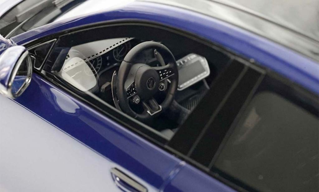L’intérieur est tout aussi remarquable avec des textures reproduites avec une grande rigueur. L’emploi de pièces en photo-découpe accentue la qualité du rendu. Les surpiqûres de la planche de bord ont même été rapportées, tout comme les touches de carbone ici et là. Malgré l’absence d’ouvrants, cela en fait une pièce assez incroyable qui justifie son prix de vente dans la moyenne haute. Cependant, il faut noter que chaque exemplaire est fourni avec un superbe socle de présentation de couleur gris, qui porte le nom du modèle ainsi qu’une plaque numérotée. Autant dire que cela en fait un superbe objet d’exposition assez cool qui s’intègrera facilement à votre collection…
