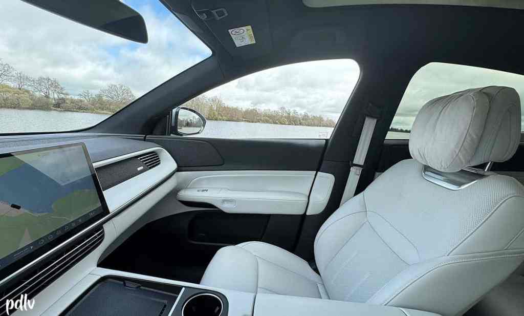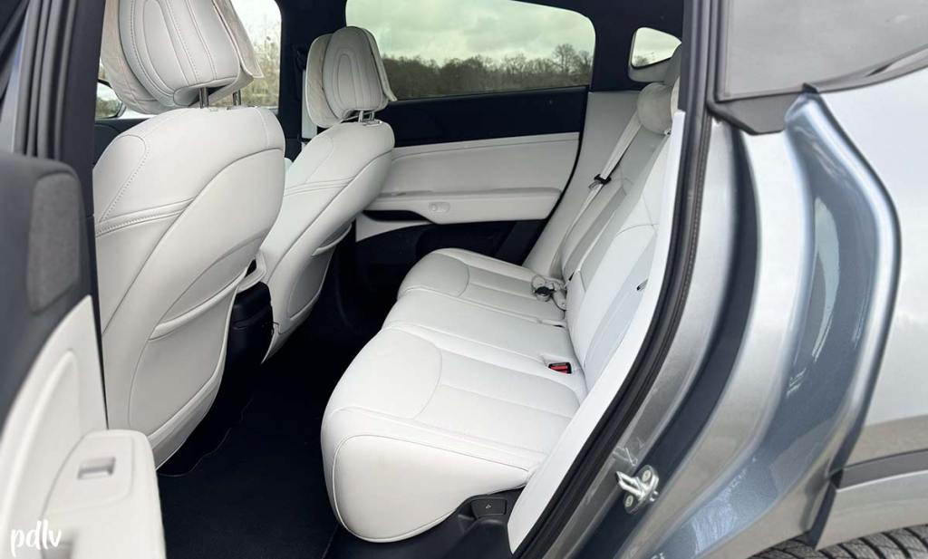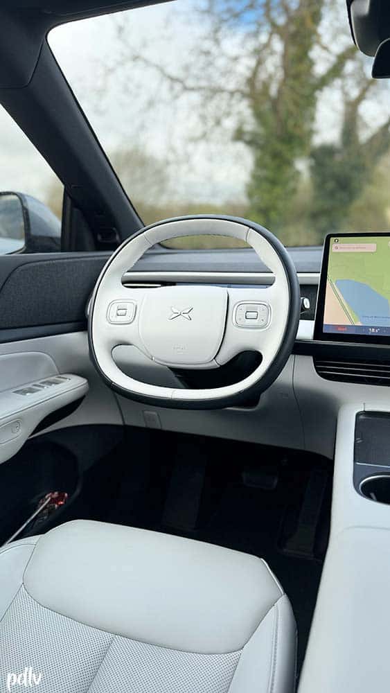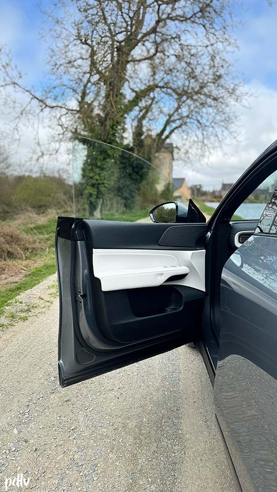 Au fil des kilomètres, nous avons été séduits par l’agrément du XPeng G6 Performance. Dynamique sans être sportif, il offre surtout un grand confort de conduite ; on s’y sent très bien. Les finitions sont agréables, la dotation est particulièrement riche de série et on ressent la bonne volonté de la marque. Le système audio Xopera, identifiable à la petite plaque sur la planche de bord, apporte 18 haut-parleurs pour une puissance totale de 960 Watts. Le son est de qualité, avec un bon équilibre et on trouve même des haut-parleurs au niveau de l’appuie-tête du conducteur. C’est très original et plutôt agréable…