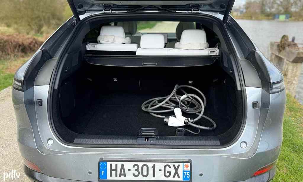 Côté coffre, nous sommes sur un volume de 571 litres. C’est dans la moyenne du segment. La forme facilite le chargement, rien à signaler de ce côté-là. En revanche, XPeng n’a pas intégré de frunk (coffre avant) sur le G6.