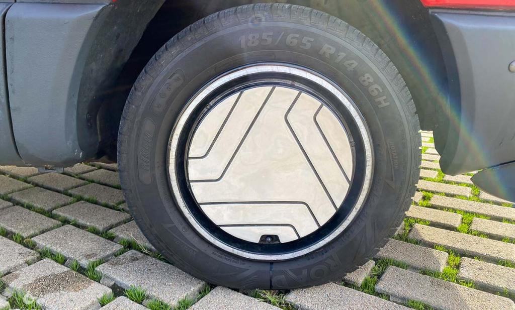À bord, c’est un voyage dans le temps. On retrouve des traits très géométriques, notamment la planche de bord, au design très strict. Malgré cela, la dotation est relativement correcte et l’habitable est baigné de lumière avec de grandes surfaces vitrées. Les habillages sont vraiment jolis. D’ailleurs, les garnitures de portes ont été restaurées, ce qui explique leur bel aspect. Les sièges sont dans un bel état de conservation, avec un tissu clair en bon état général. Le conducteur dispose même de son rembourrage pour poser son coude à la portière. Tout a été pensé pour le confort général de la famille, avec pas mal de bonnes idées reprises par la suite.