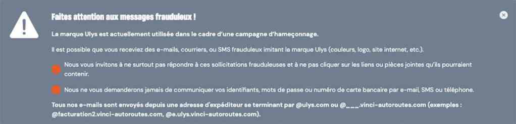Si vous vous rendez sur le site d’Ulys, il vous sera possible de lire un message d’avertissement qui mentionne que « la marque Ulys est actuellement utilisée dans le cadre d’une campagne d’hameçonnage ». Quelques recommandations y figurent également afin de sensibiliser les utilisateurs aux différentes escroqueries en cours. Pour rappel, tous les e-mails officiels envoyés par Ulys se terminent impérativement par @ulys.com.