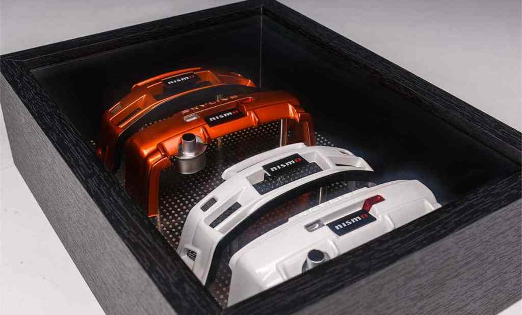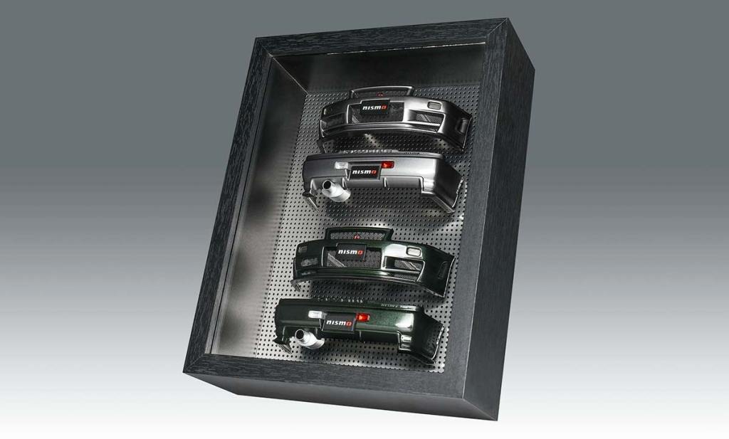 Pour ma part, j’aime beaucoup le rendu. Le fait de n’afficher que les pare-chocs permet de bien apprécier les traits ainsi que tout le travail aérodynamique. Des cache-plaques Nismo prennent place, apportant une petite touche de couleur qui passe vraiment bien. Le cadre en lui-même semble de très belle facture. Ce n’est d’ailleurs pas la première fois qu’un fabricant de voitures miniatures exploite des pièces pour en faire un cadre. Porsche l’avait fait dernièrement en s’appuyant sur le capot de la dernière 911 Spirit 70. Cela donne un visuel équilibré et intéressant à regarder. Si vous collectionnez les voitures miniatures, cela fera une décoration parfaitement dans le thème !