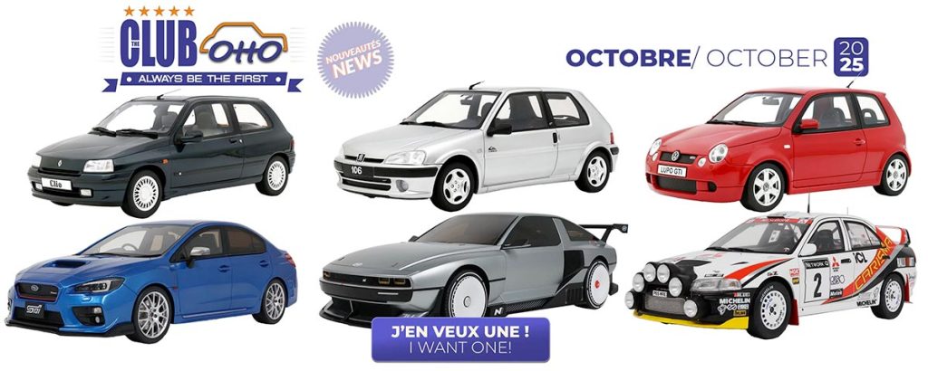 Hier, c’était l’effervescence sur le site d’OttOmobile puisque les précommandes des nouvelles voitures miniatures 1/18 ont été ouvertes. Je vous propose donc de découvrir plus en détails cette nouvelle sélection de 12 modèles. Parmi elles, on découvre pas moins de 5 moules totalement inédits et toujours une impressionnante diversité dans le choix des modèles. On assiste aussi au retour de grands classiques particulièrement attendus. Comme d’habitude, nous sommes sur des modèles en résine, sans ouvrants, vendus 69,90 € pour les modèles « classiques » et 79,90 € pour ceux de compétition. Des prix très attractifs qui n’empêchent pas OttO de proposer un très beau niveau de finition pour ses modèles. Voici donc les modèles qui pourront prochainement agrémenter votre collection…