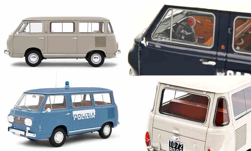 Commercialisée à partir de 1964, la Fiat 850 a connu un immense succès. La marque italienne a produit de nombreuses déclinaisons et versions de cette petite berline familiale, même chez Abarth ! Pour autant, une variante bien spécifique a intéressé les familles : la 850 Familiare. Dès 1965, il était possible de s’offrir le prémisse d’un monospace avec une version capable d’accueillir jusqu’à sept places à son bord. Ce modèle rarissime s’apprête à intégrer le catalogue de Laudoracing, à l’échelle 1/18. À cette occasion, pas moins de 9 déclinaisons sont proposées, dont celles de la Carabinieri et de la Polizia, en plus d’une version ambulance. Les précommandes sont déjà ouvertes, avec un ticket à 109,90 €… Pour le moment !