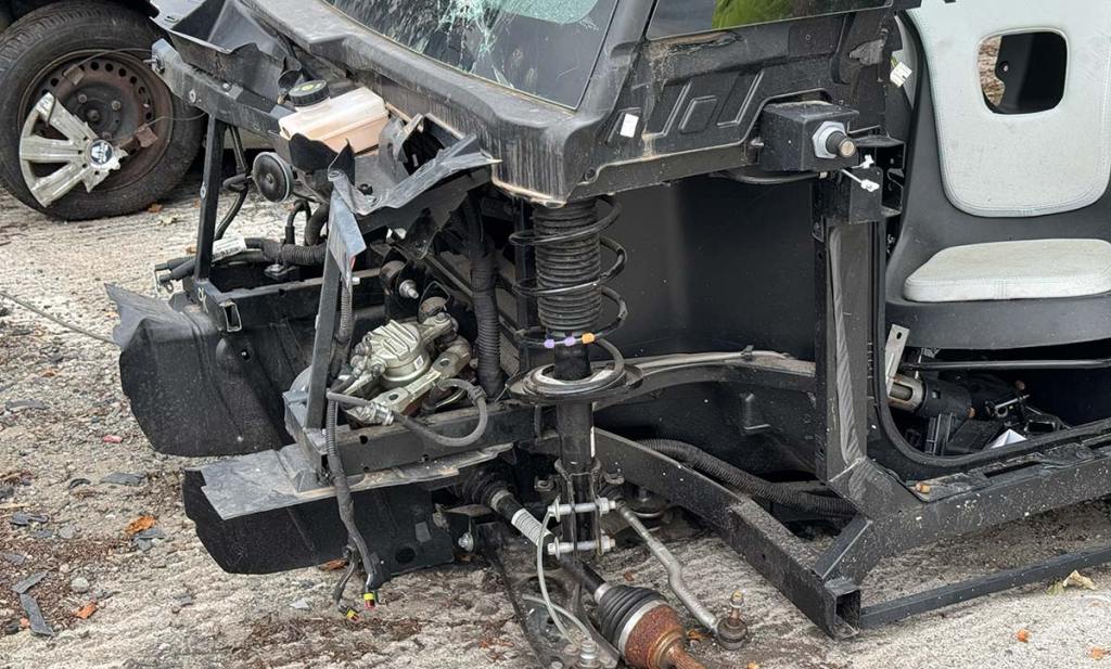 Cet exemplaire a malheureusement connu une fin de vie très prématurée… De 2024, cette petite Fiat Topolino a eu un choc avant qui a tordu la traverse. Sur les petits véhicules électriques, le coût des réparations est souvent très important et entraîne facilement la radiation. Les véhicules sont alors rachetés par les assureurs puis atterrissent en casse où ils sont dépouillés de toutes les pièces susceptibles d’intéresser les acheteurs. Cela a visiblement été le cas des panneaux de carrosserie qui ont été récupérés… Ou bien retirés dans le but de pouvoir extraire la batterie. Sur la Topolino, pas mal de démontage est nécessaire pour réaliser l’opération. Elle prend place sous le caisson que l’on aperçoit sur quelques clichés.