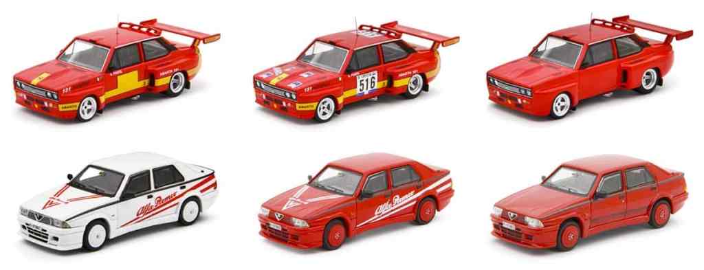 Déjà proposée chez Laudoracing à l’échelle 1/18, l’Alfa Romeo 75 Turbo Evoluzione débarque cette fois à l’échelle 1/64. Pour rappel, il s’agit d’une version développée pour homologuer la 75 en compétition. Les versions civiles sont toutes identiques, avec une livrée rouge, un kit carrosserie et un moteur préparé pour l’occasion à 155 chevaux. Au 1/64, vous aurez le choix parmi trois variantes colorées. Aux côtés de la version rouge « traditionnelle », vous avez une variante avec une décoration blanche ou bien un modèle blanc avec les strippings rouges. La modélisation me semble plutôt correcte dans l’ensemble. Un travail de simplification a été opéré sur plusieurs éléments, comme les essuie-glaces ou les jantes mais on découvre une jolie calandre et une belle finesse dans le moule. C’est donc une bonne surprise !