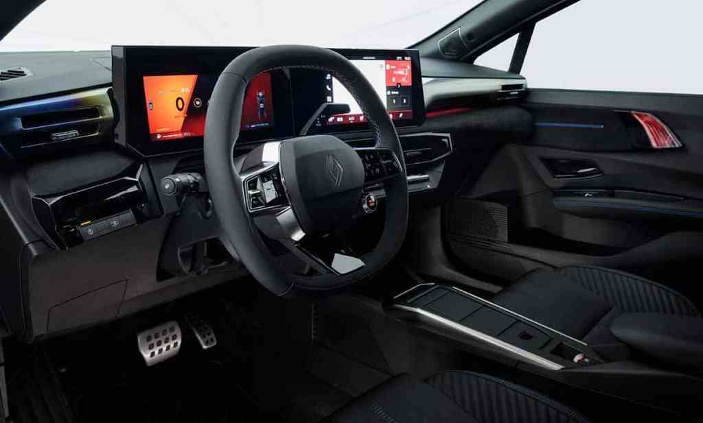Les projecteurs sont intégrés dans une platine noire très graphique, en plastique. L’ensemble paraît assez chargé de prime abord mais les traits se répondent pourtant plutôt bien. La marque a également bien interprété le losange sous toutes ses formes. À l’inverse, le profil semble presque sage. On retrouve des poignées de portes arrière dissimulées, de belles courbes, des ailes élargies par des extensions d’ailes et un vitrage qui s’achève en équerre. Les feux sont inscrits dans un décaissement qui se prolonge sur les ailes arrière. L’ensemble est donc très dynamique. Sur les images, on découvre la finition haute Esprit Alpine, montée de série avec des jantes de 18 pouces.