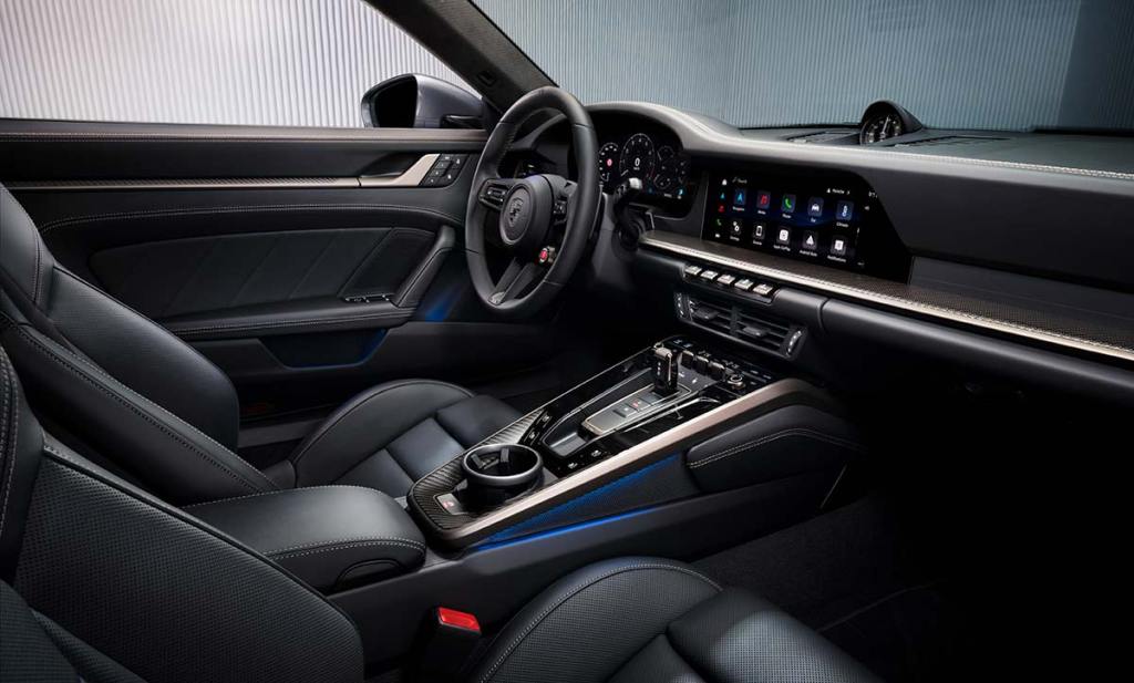 Sans surprise, Porsche a largement retravaillé le châssis pour offrir toujours plus d’efficacité. Cela passe notamment par de nouveaux réglages du PDCC, qui gère les paramètres actifs du châssis. À bord, on retrouve les sièges Sport Plus adaptatifs réglages électriquement sur 18 positions, avec une fonction de massage de série. Moyennant un « petit » surcoût de 4 968 €, vous pourrez même vous offrir les baquets allégés de la version GT3. Comme pour les autres versions restylées, les sièges arrière ne sont plus fournis de série, ils prennent désormais la forme d’une option gratuite. Pour le reste, rien de bien nouveau. Quelques nouveaux inserts sont disponibles mais on conserve le bel habitacle de la première série, avec de superbes finitions et une instrumentation 100 % numérique avec une belle dalle de 12,6 pouces. De nombreuses possibilités de configuration sont disponibles, avec notamment des selleries élaborées par le département Exclusive Manufaktur.