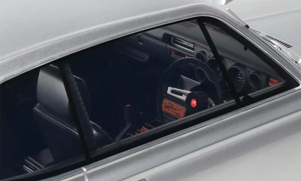 Le saviez-vous ? La Nissan Skyline 2000 GT-R est surnommée « Hakosuka », qui est la contraction de deux mots japonais. « Hako » désigne une boîte et « Suka » est l’abréviation de Skyline. C’est un modèle devenu iconique des années ’70 chez les japonaises. Pour l’anecdote, un petit peu moins de 2 000 exemplaires ont été produits… Soit autant que cette production OttOmobile au 1/12 !