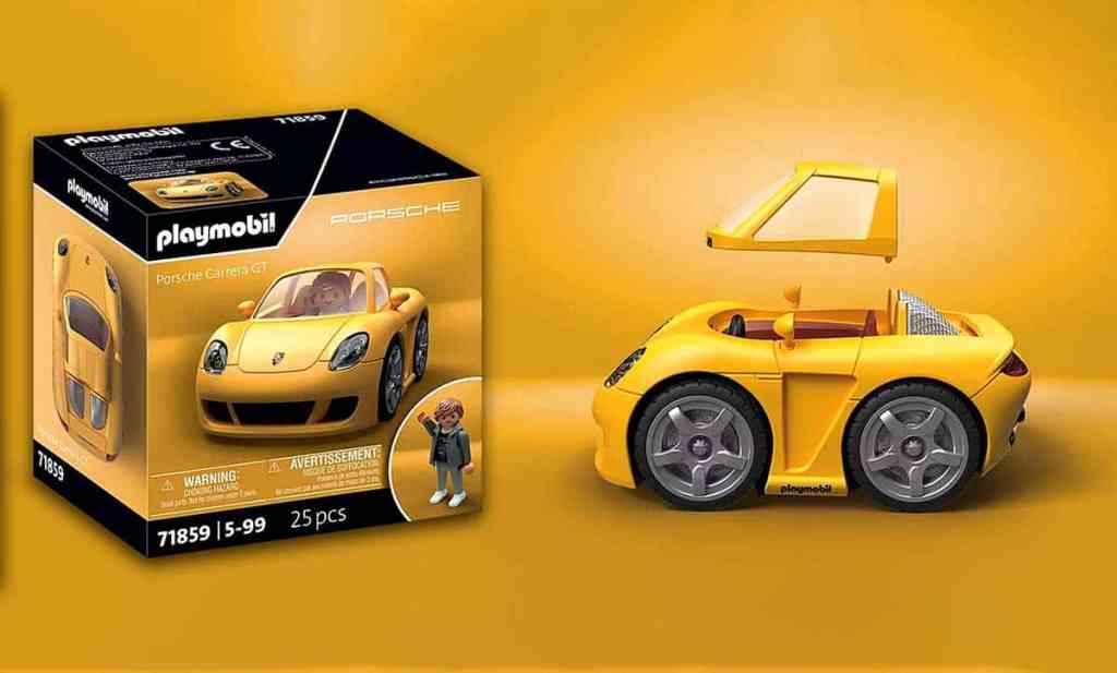 Depuis quelques années déjà, Playmobil réalise des voitures sous licence. Des collaborations avec de grands constructeurs ont déjà eu lieu : Volkswagen, Ford, Ferrari ou encore Citroën. Pour autant, c’est avec Porsche que tout a commencé. Au début, les rapports de proportions étaient les plus proches possibles de la réalité, apparentant les voitures Playmobil a de véritables maquettes… Tout en ayant les caractéristiques de jouets. Désormais, il semblerait que le fabricant de personnages en plastique s’oriente vers un style plus original. Les rapports de proportions sont altérés avec une compression volontaire, qui donne un style plus mignon et moins réaliste, aux productions à venir. La nouvelle gamme comprend quatre modèles, dont la Porsche Carrera GT, commercialisée depuis peu et qui arrive à pic pour commémorer les 25 ans de l’hypercar.