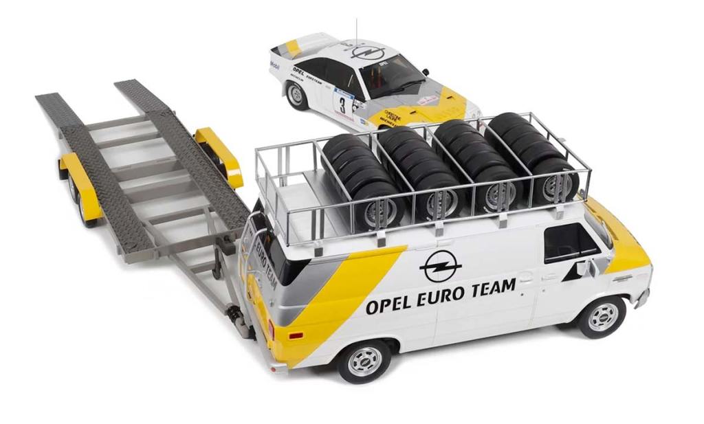 Hier, OttOmobile a dévoilé un nouveau Rallye Pack qui fait sensation. Il comprend un superbe Chevrolet G30 attelé à une remorque à deux essieux capable d’accueillir une Opel Manta Groupe B de 1984. Ce bel ensemble routier, à l’échelle 1/18, est actuellement proposé au prix de 179,90 €. Seulement 1 500 exemplaires numérotés sont prévus. Un petit coup de cœur pour ces modèles ? Il est encore possible de les précommander directement sur le site du fabricant. Les livraisons sont prévues à partir du 18 novembre 2025. Mais avant cela, revenons brièvement sur ces trois engins aux couleurs d’Opel Euro Team !