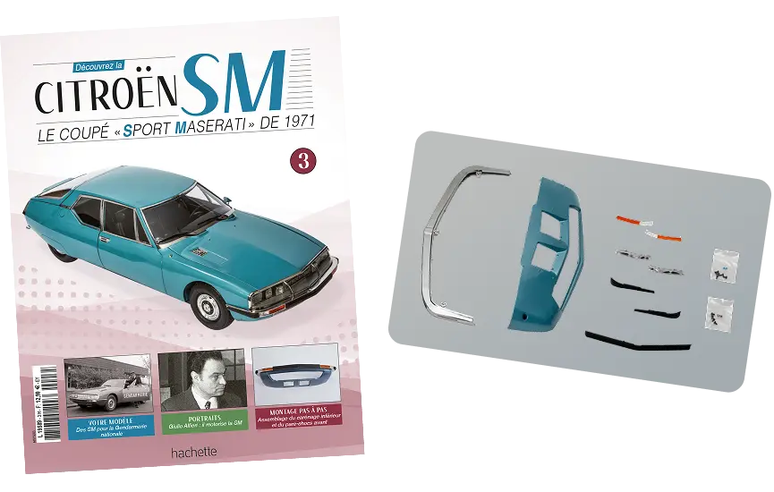 Pour permettre à un maximum de personnes de découvrir la collection, le premier numéro est affiché à un prix extrêmement bas : 0,50 €. Contrairement à d’autres collections où un élément impactant est fourni (pare-chocs avant ou capot), les édition Hachette ont fait le choix de présenter la calandre. C’est l’élément phare de la Citroën SM et c’est un bon moyen de se rendre compte des dimensions du modèle. Naturellement, ce prix alléchant ne concerne que le premier numéro de la collection. Il comprend aussi la plaque d’immatriculation et des blocs optiques. L’éditeur ne facture pas de frais de livraison.