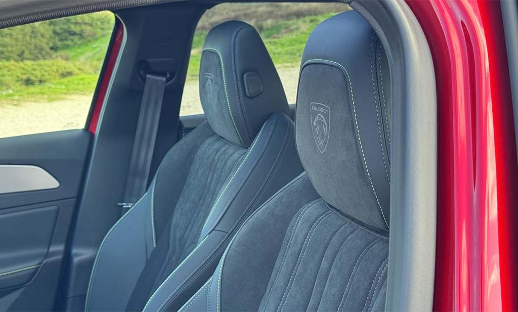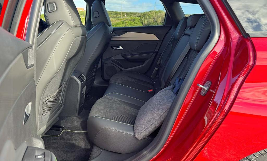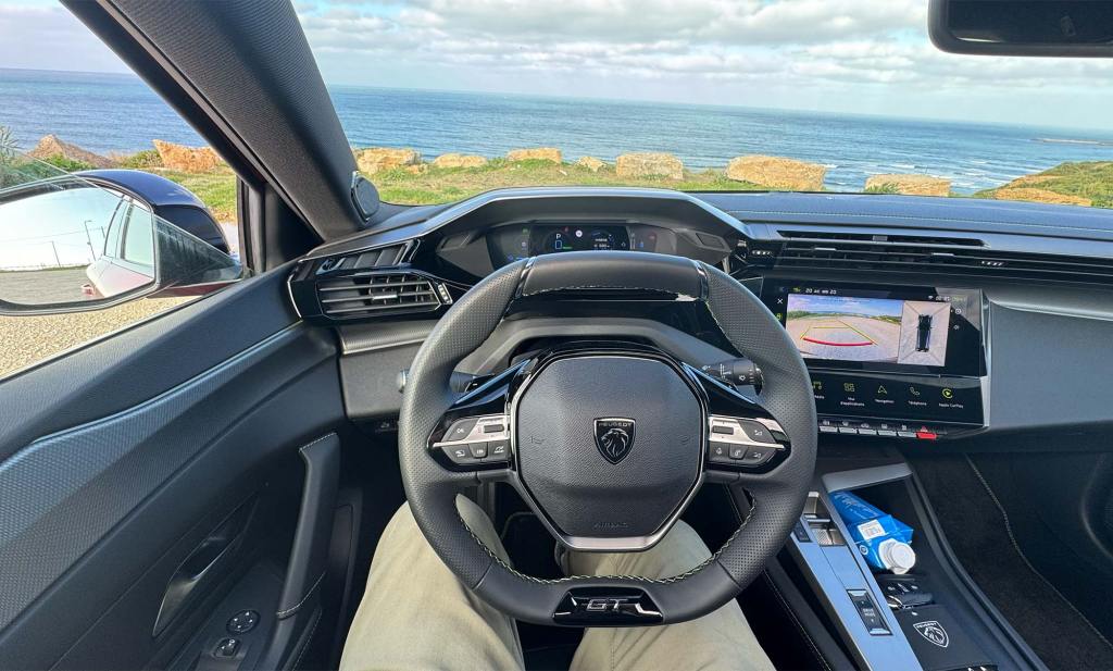 Notre finition GT Exclusive offre tout ce que l’on peut attendre d’une compacte moderne : une sellerie en Alcantara exclusive avec les sièges chauffants et massants, la conduite semi-autonome de niveau 2, la surveillance des angles morts, l’éclairage d’ambiance, le démarrage mains-libres ou le volant en cuir. On retrouve naturellement le petit volant ergonomique, l’instrumentation numérique i-Cockpit de 10 pouces et un écran central de 10 pouces également. L’affichage 3D est offert de série sur la finition haute GT Exclusive, en option sur GT. Les ajustements sont plutôt réussis dans l’ensemble, l’ergonomie est bonne et le choix des matériaux est toujours aussi convaincant. On se sent bien à bord !