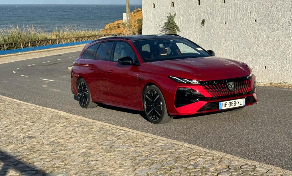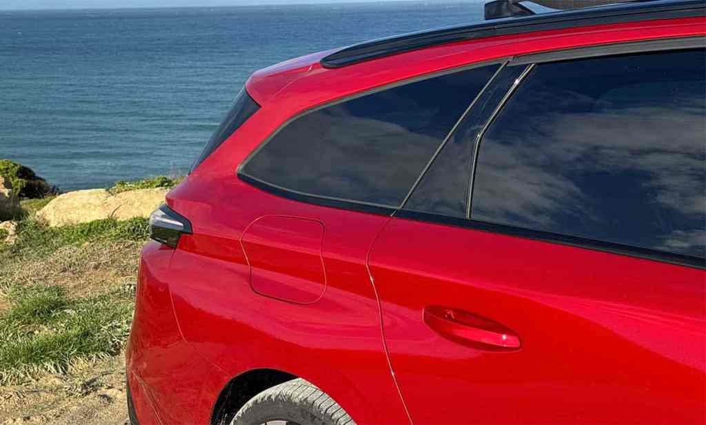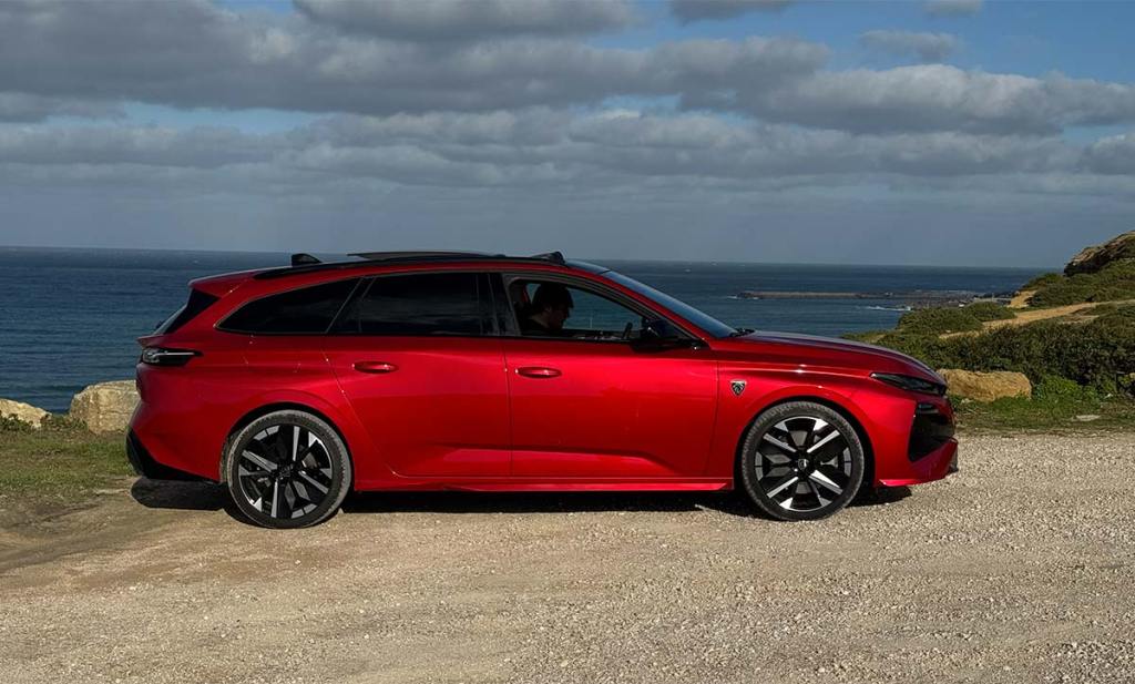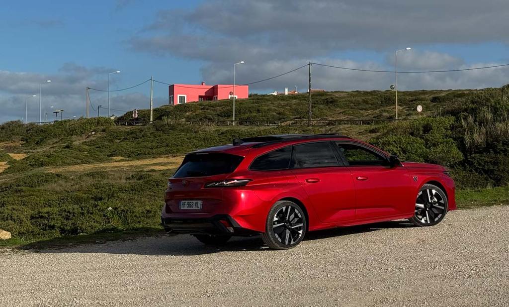 On retrouve donc les deux mêmes carrosseries au choix et les mêmes dimensions, à savoir 4,36 mètres de long pour la berline et 4,64 mètres pour le break SW. Lors des événements presse organisés par la marque au lion, nous avions le choix parmi toutes les versions possibles. Notre choix s’est porté sur la version SW, équipée du nouveau moteur Plug-In Hybrid de 195 chevaux… Pour la couleur, si le bleu Ingaro constitue la vraie nouveauté colorée du break, c’est une teinte que nous connaissons déjà. Le soleil éclatant de Porto nous a fait choisir le rouge Elixir pour ses beaux reflets !