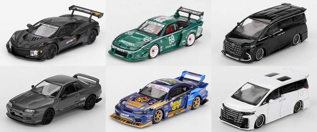 Toutes les deux semaines, Mini GT dévoile une nouvelle sélection de miniatures à l’échelle 1/64. Pour cette fois, on découvre les Toyota Alphard et Vellfire, deux vans de luxe inconnus dans nos contrées mais qui ont leurs adeptes au Japon ! On découvre aussi une nouvelle variante de la Nissan LB-Silhouette 180SX. Cette sélection de six nouveautés sera disponible dès le retour des beaux jours, toujours dans un ordre de prix très raisonnable, autour des 12 € l’unité. Passons brièvement en revue ces modèles sympas qui pourront rejoindre votre collection de voitures miniatures à cette petite échelle.