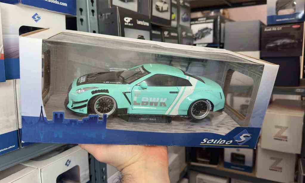 Dans ma collection, j’ai également cette Nissan GT-R Liberty Walk. Elle fait partie des premiers modèles habillées du vert menthe. Déjà en son temps, c’est un modèle qui a connu un succès commercial fort.
