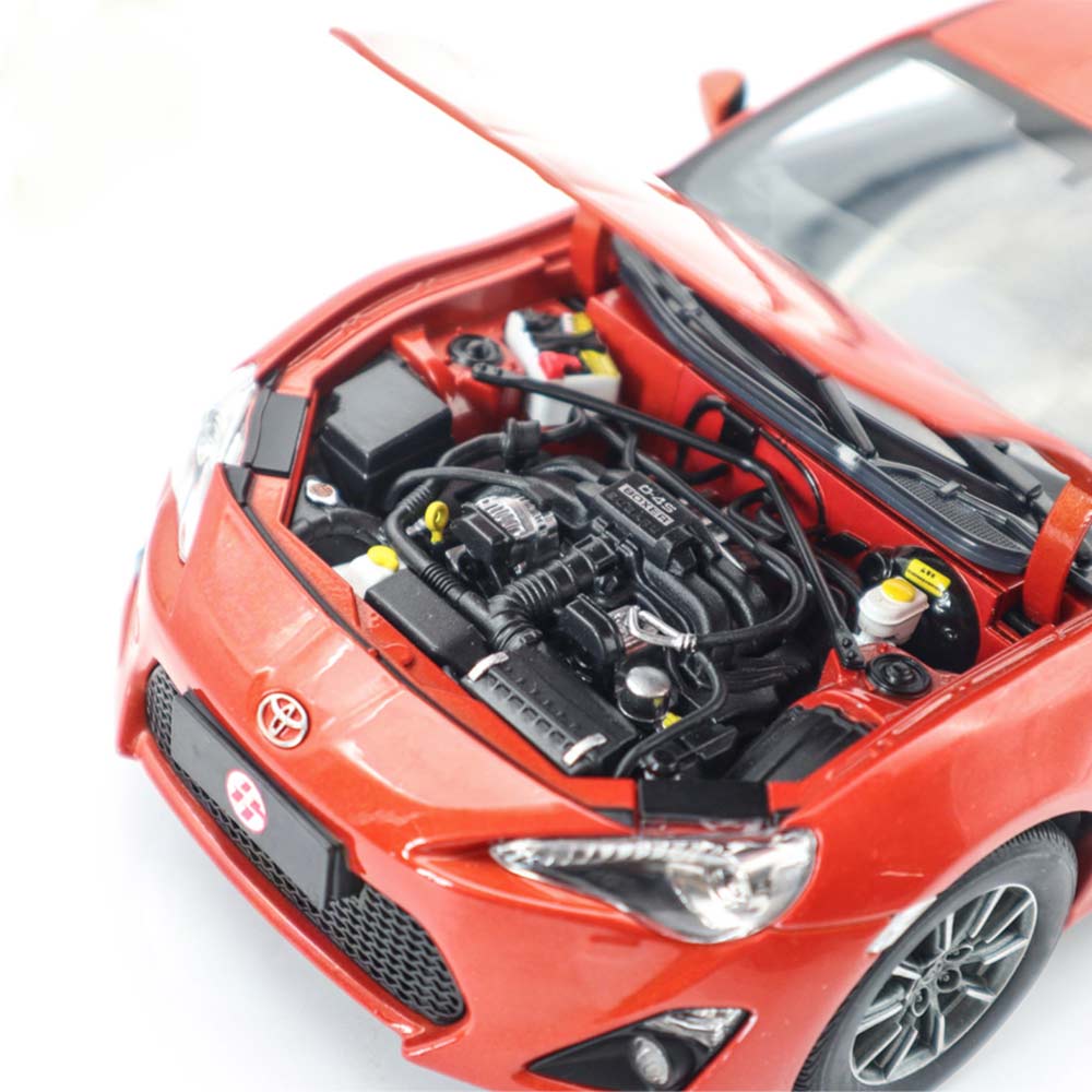 Un gros moteur atmosphérique, une ligne agréable, une architecture propulsion et une boîte mécanique : la recette de la Toyota GT86 a tout pour plaire. À l’échelle 1/18, c’est un modèle qui a été assez peu miniaturisé et c’est bien dommage. On saluera l’initiative de FAW qui a été parmi les premiers à livrer sa version. Nous sommes sur une miniature assez difficile à cerner. Visuellement, les premières impressions sont assez bonnes. La ligne est conforme, il y a tous les ouvrants et la baie moteur est particulièrement réussie. Il y a des éléments qui manquent de finesse, comme la grille avant ou encore les optiques, dont les glaces semblent épaisses.
